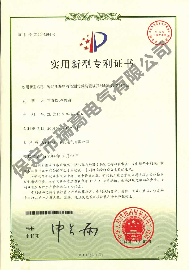 職業(yè)健康安全管理體系認證證書職業(yè)健康安全管理體系認證證書質(zhì)量體系認證證書質(zhì)量體系認證證書電池溫度檢測組件電池溫度檢測組件放電間隙放電間隙基于IGBT技術(shù)的分支可控智能匯流箱以及光伏系統(tǒng)基于IGBT技術(shù)的分支可控智能匯流箱以及光伏系統(tǒng)新型智能型變壓器風冷控制柜實用新型專利證書新型智能型變壓器風冷控制柜實用新型專利證書箱變智能監(jiān)控系統(tǒng)箱變智能監(jiān)控系統(tǒng)智能泄露電流監(jiān)測傳感裝置以及泄露電流監(jiān)測系統(tǒng)智能泄露電流監(jiān)測傳感裝置以及泄露電流監(jiān)測系統(tǒng)